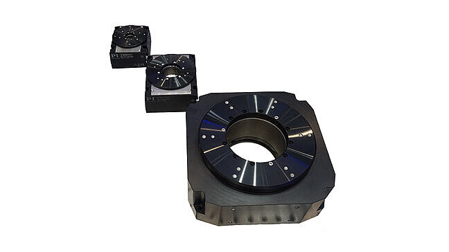 PI提供了电动样本定位装置。配备步进电机的XYZ线性轴堆叠系统用于对准X-射线束中的转动轴,以及波导与样本之间的距离变化。在其上方,使用360度高精度空气轴承转台进行断层扫描。在此基础上,采用在长达400微米行程中实现超精细定位的高分辨率XYZ压电平台来精确调整旋转中心的样本,同时确保超高精度的XYZ扫描。