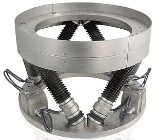 惯性是多轴系统中另一个关键考虑因素。 多轴设置中的最底层运动台支撑所有上层运动台以及样品,这意味着每个运动台都“承受”其上方整个系统的惯性。 这会影响系统在保持所需精度水平的同时加速和减速样品的能力。 并联运动可以显著降低惯性。 例如,在六足位移台六轴定位器中,只有一个公共平台由6个执行器支撑,全部执行器共享相同的惯性。
