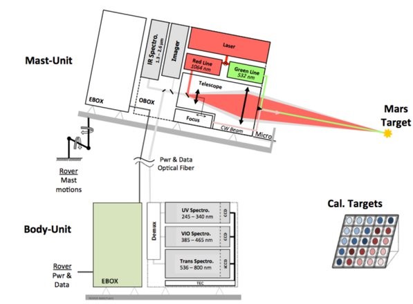SuperCam集成了可见光和红外光谱仪、激光器及相机,通过分析岩石和土壤中的有机化合物痕迹,追溯远古生命存在的可能性。 有关SuperCam的更多信息