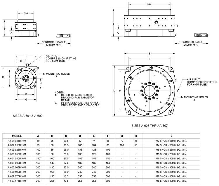 A-607.xxxH | A/B正交,差动,RS-422,4兆赫兹 | 33.5 | 500 | 1 / 转,编码器一步内一个计数,同步以输出信号 |