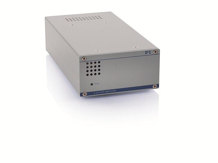 E-413压电陶瓷放大器模块在压电陶瓷剪切和弯曲促动器的静态和动态操作中提供精密控制。输出电压可通过外部偏移电位计(未包含在发货范围内)来准确设定或通过放大因数为50的模拟输入信号进行控制。