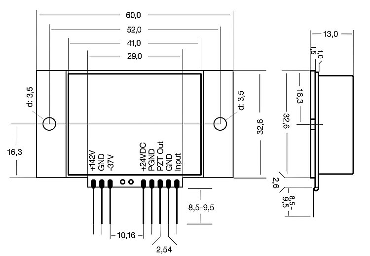 压电放大器,单通道,OEM模块,-30至130伏,工作电压为24伏