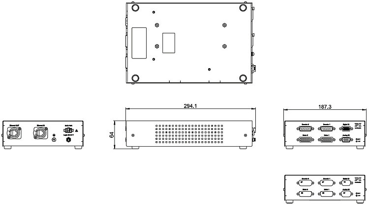 Analog I/O lines | HD D-sub 15 (m): 2 differential analog inputs: ±10 V, 12-bit 1 differential analog output: ±10 V, 10 bit |