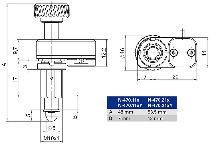PiezoMike 线性促动器,7.5 毫米,M10×1安装螺纹,真空兼容至10-6 百帕