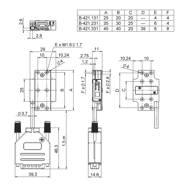 | Positioning | B-421.131 | B-421.231 | B-421.331 | Tolerance |