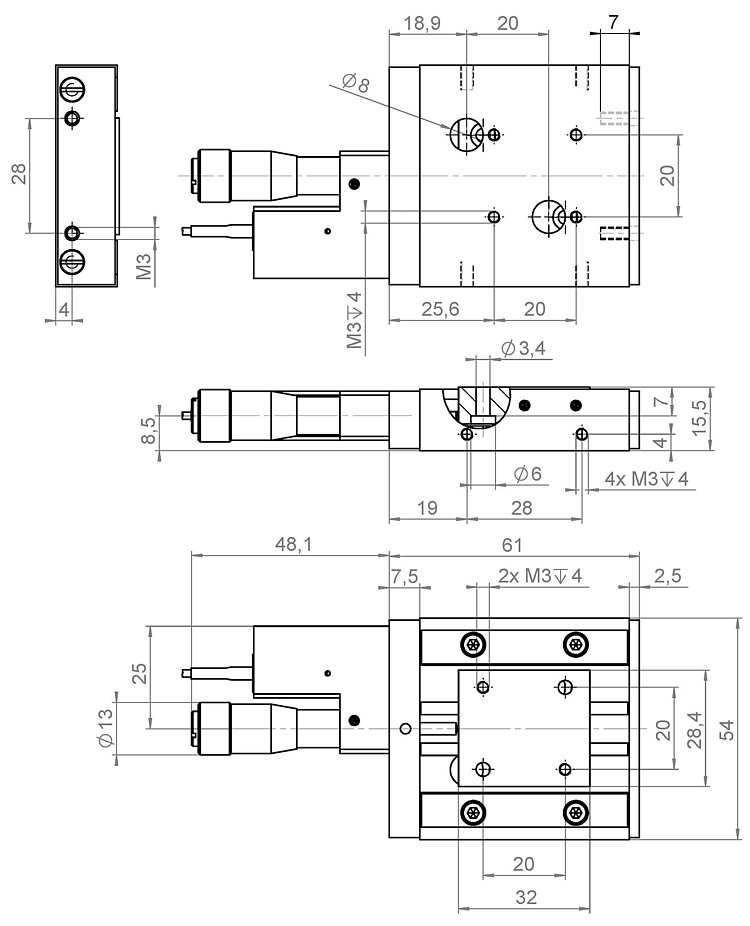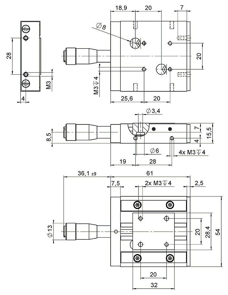 M-105线性平台可提供多种配置,且行程可长达18毫米。它们采用交叉滚柱轴承,导向精度优于2微米。运动平台用弹簧施加预载来抵住精密千分丝杠以抑制空回。