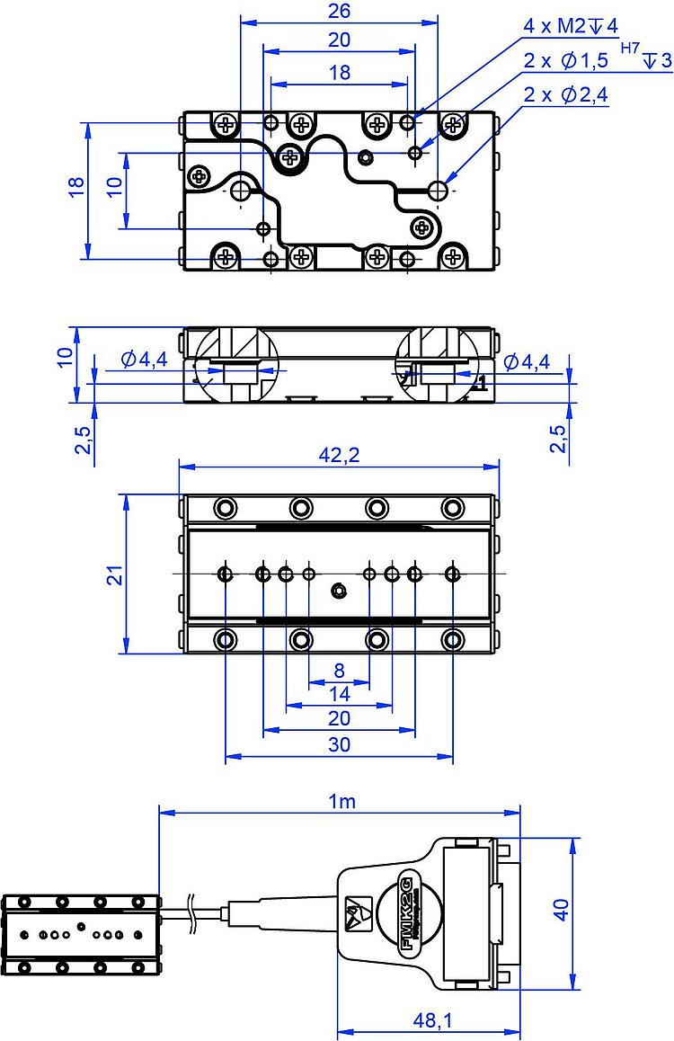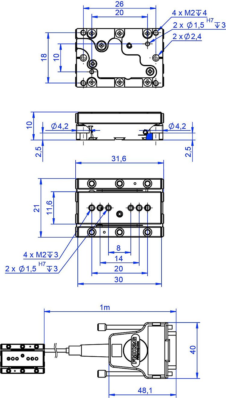 Q-Motion®小型线性平台,压电惯性驱动器,行程为32mm,线性光栅尺,分辨率为4nm,驱动力为0.6N,尺寸为21×42×10mm(宽×长×高)