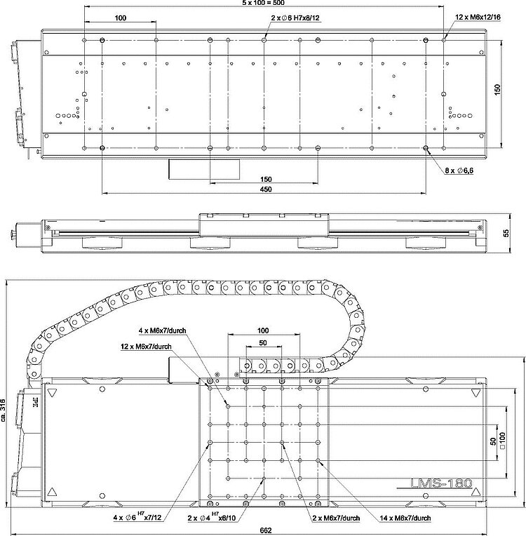 LMS-180 高动态 精密线性平台,无铁芯线性电机,508毫米(20英寸)行程,带正弦/余弦信号传输的线性编码器