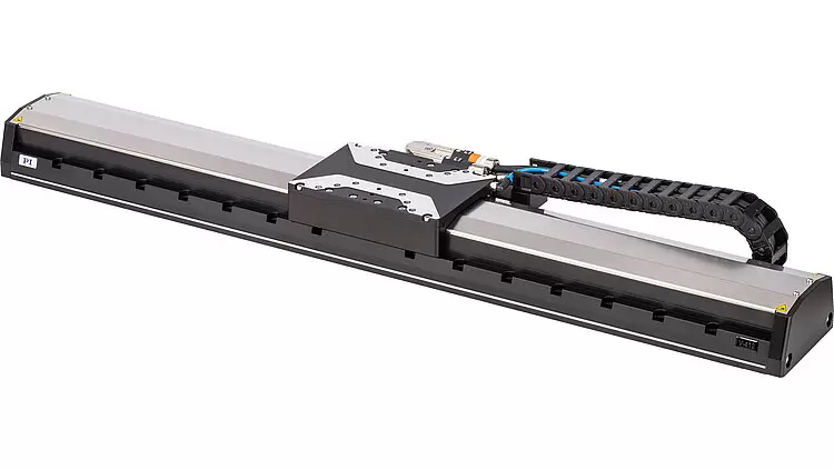 高负载线性平台,行程为407毫米,宽度为116毫米,负载能力为400牛,带EnDat 2.2信号传输的绝对线性编码器,传感器分辨率为1纳米,牵引链,无铁芯三相线性电机,电压达300伏