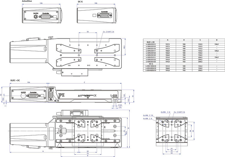 精密线性平台;直流电机;行程为102mm;有效载荷为100N;最大速度为50mm/s;滚珠丝杠;增量直线光栅尺,传感器信号周期为20µm,正弦/余弦,1Vpp