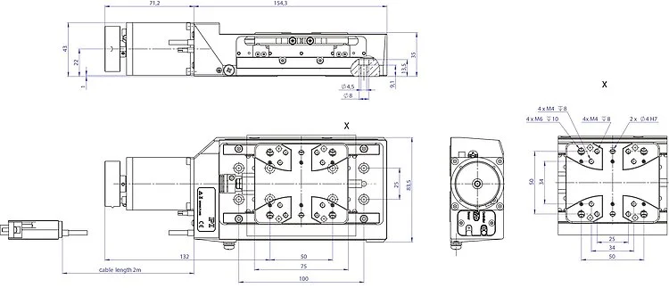 真空兼容型精密线性平台;两相步进电机;行程为52mm;有效载荷为100N;最大速度为10mm/s;滚珠丝杠;真空兼容至10⁻⁷hPa;2m电缆长度