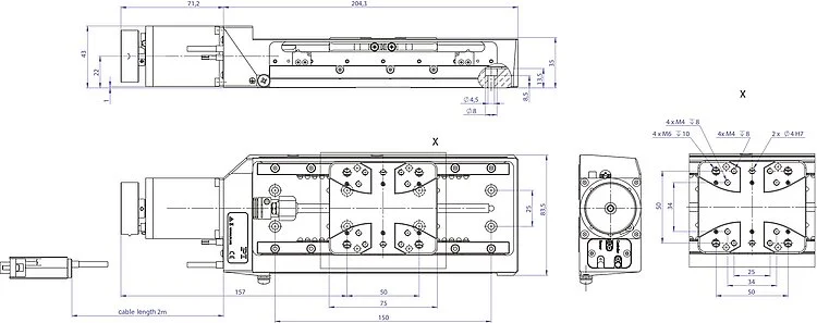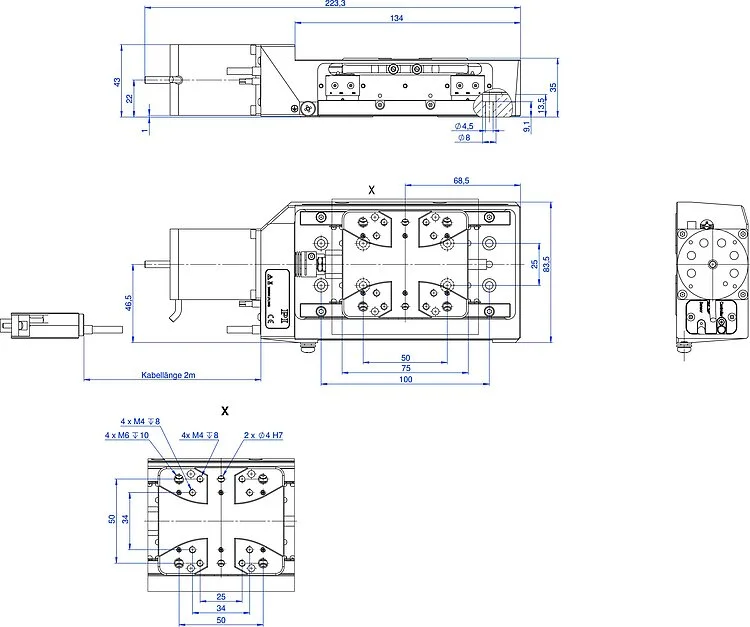 带防蠕动系统的交叉滚柱导轨带来高运动精度和有效载荷。 精密滚珠丝杠,螺距为1mm。 紧凑型设计。 消除应力的铝基座可实现高稳定性。 限位开关。 位于行程中点带方向感应的非接触式光学参考点开关。