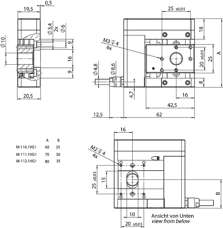 | 定位 | M-110.1VG1 | M-111.1VG1 | M-112.1VG1 | 公差 |