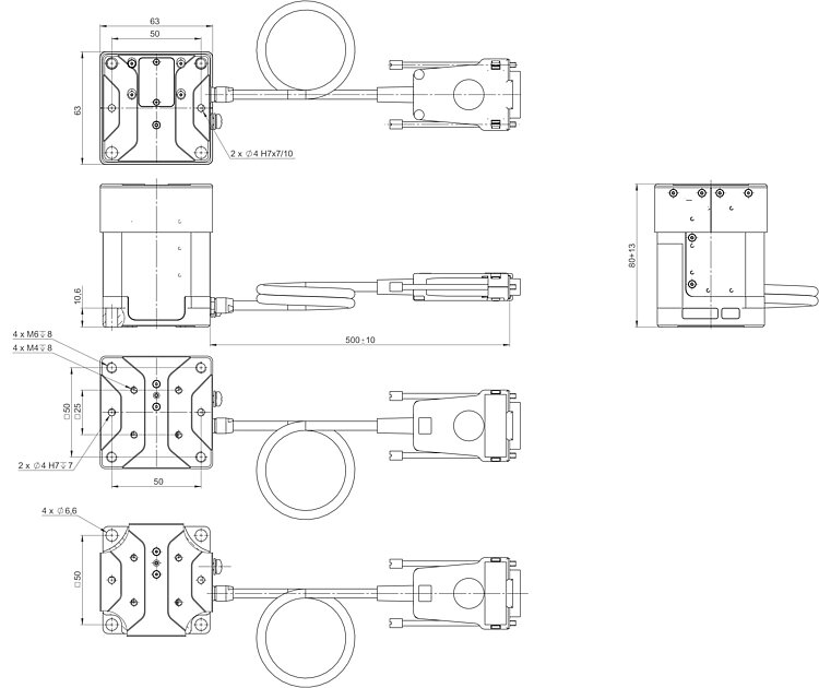 带两相步进电机的Z向位移台 | 带两相步进电机的Z向位移台,带A/B正交信号传输的线性编码器 | 带直流电机的Z向位移台,带A/B正交信号传输的线性编码器 | |||