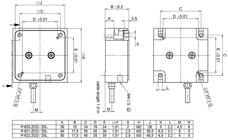 P-620.ZCD /P-620.ZCL | P-621.ZCD /P-621.ZCL | P-622.ZCD /P-622.ZCL | 单位 | 公差 | |