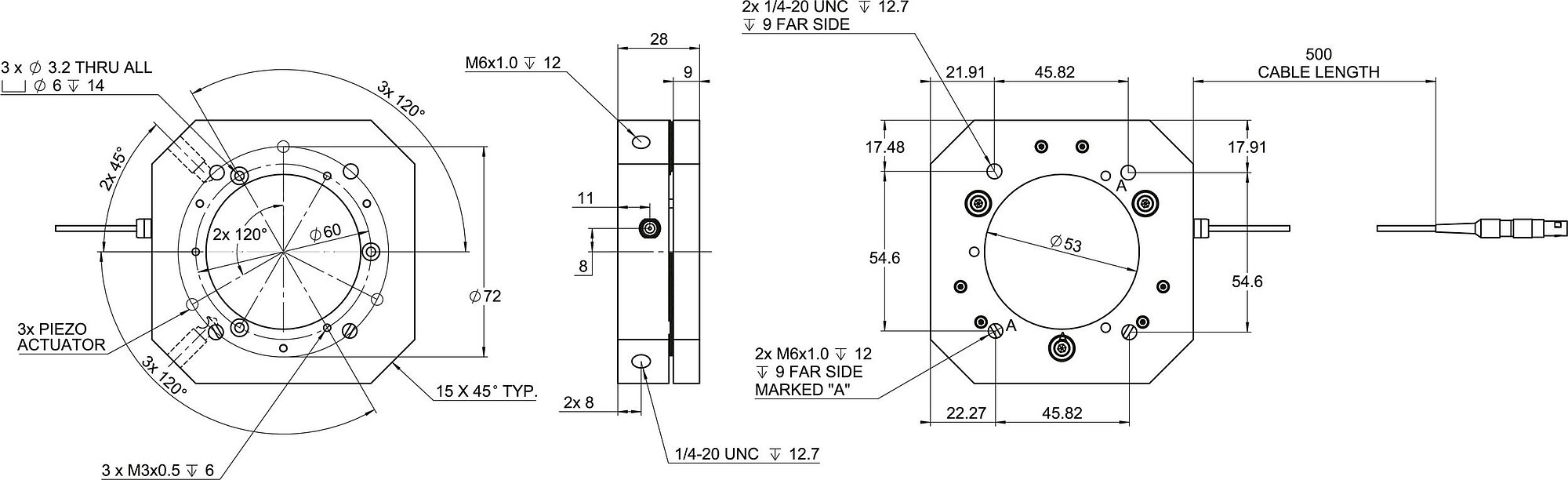 - Pigtails without connector for individual actuator control (Z, tip/tilt)