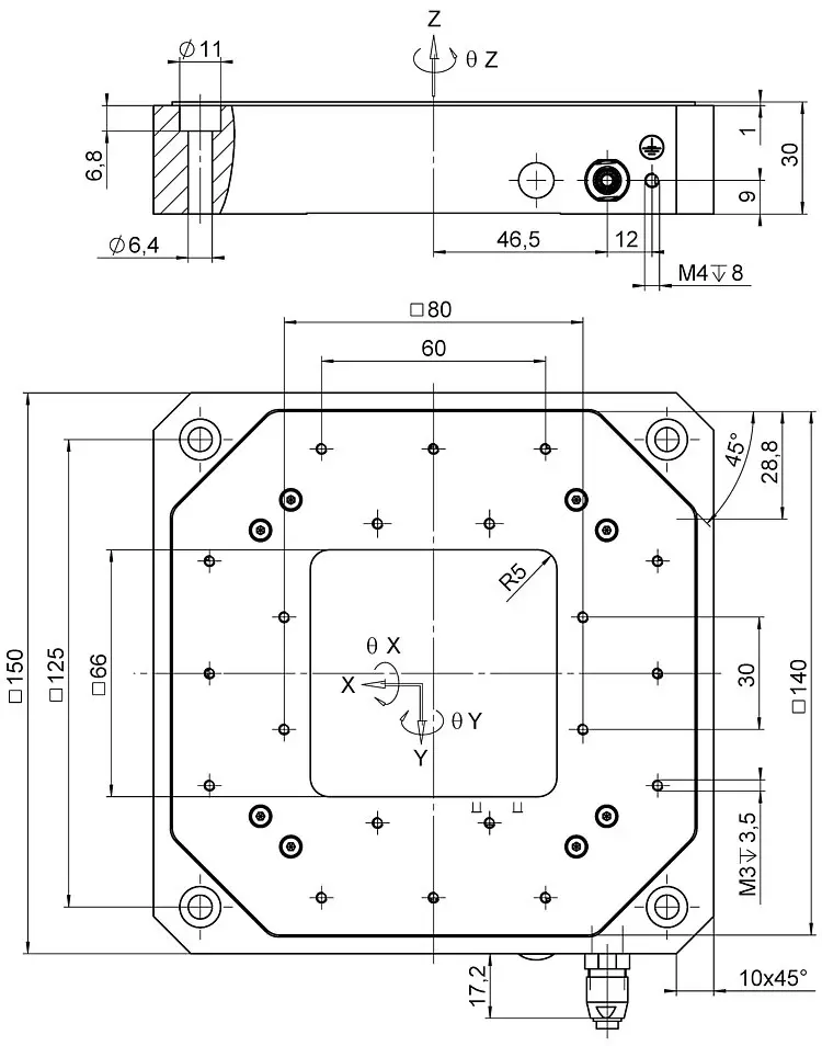 谐振频率,空载 | 450 | 350 | X、Y:450 Z:1100 | X、Y:350 Z:1100 | X、Y:450 θZ:400 | X、Y:350 θZ:300 | 赫兹 | ±20 % |