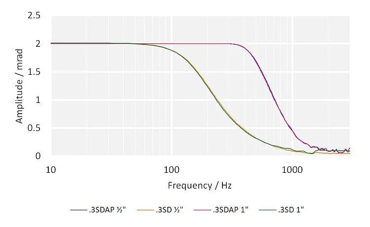 | 在带玻璃反射镜(直径25mm;厚度8mm)的负载下θX向上的谐振频率 | 1.6 kHz | 1.6 kHz | 1.5 kHz | 1.5 kHz | 1 kHz | 1 kHz | ±20 % |