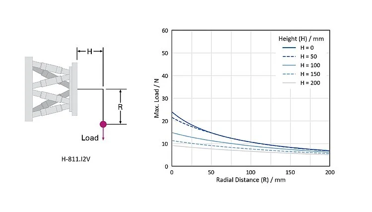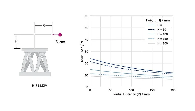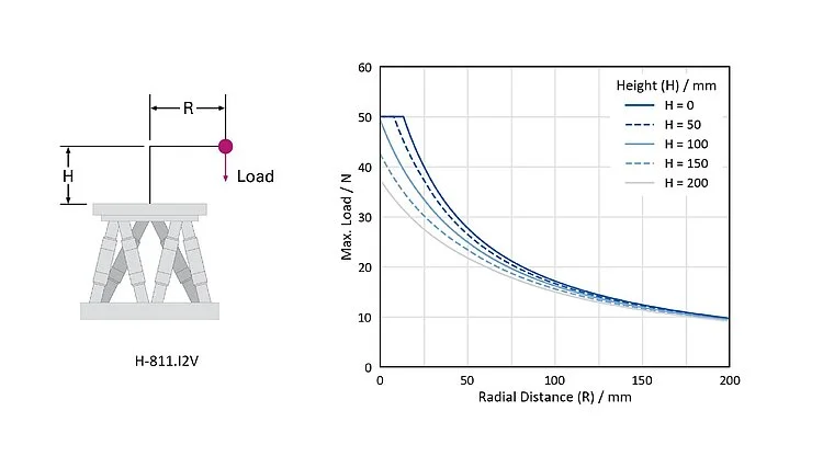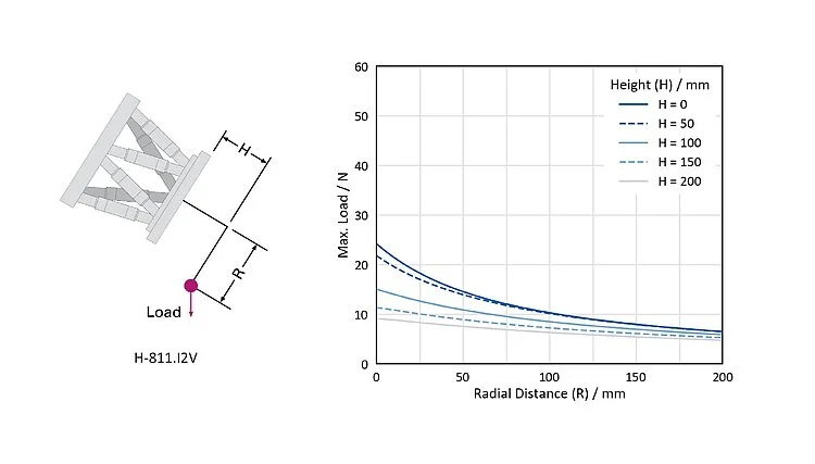 PIVirtualMove软件(可免费下载)模拟H-811的行程、对准及允许的力和扭矩,便于优化系统配置。 在此过程中,将同时考虑选定的旋转中心与负载重心。