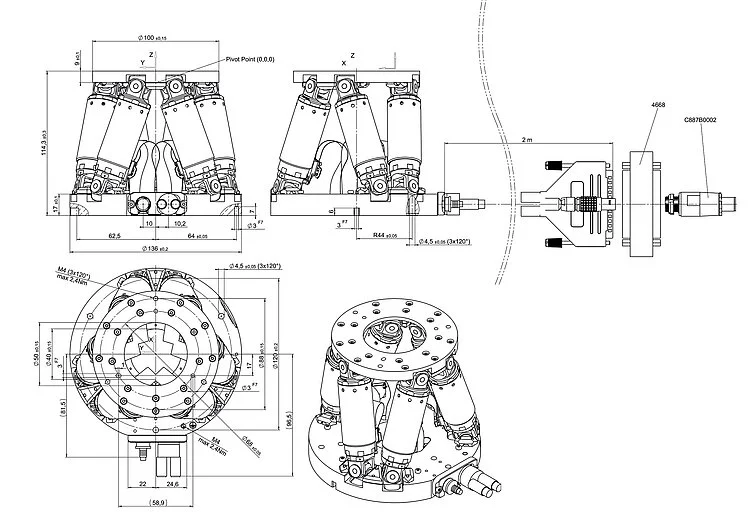 六足位移台平台适用于在所有六个自由度(即三根线性轴和三根旋转轴)实现负载的准确定位和校准。