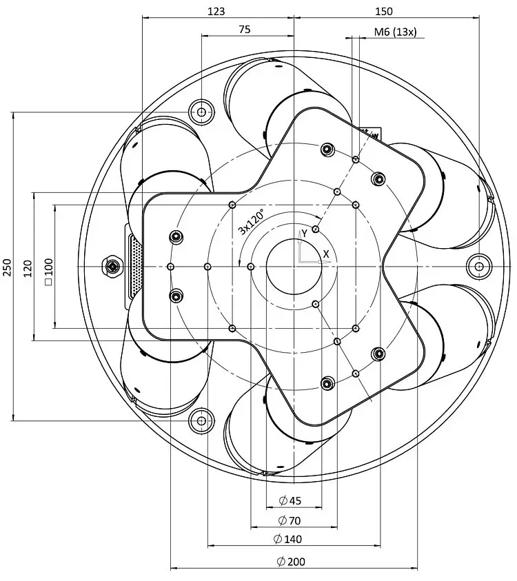 * 单个坐标(X、Y、Z、θX、θY和θZ)的行程相互依赖。本表中各轴对应的数值为其最大行程,此时其他轴和枢轴点位于参考位置。