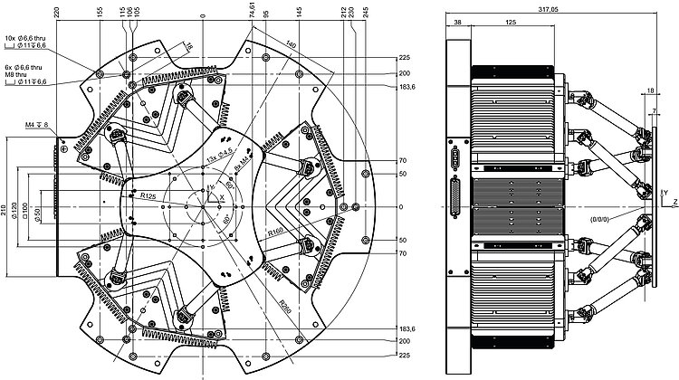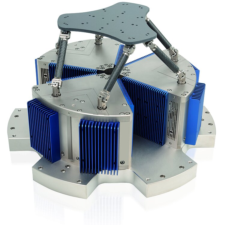 无摩擦驱动器设计基于音圈驱动器和柔性铰链导向。支撑腿和平台由碳纤维制成,可很大程度地减少运动质量和惯性。
