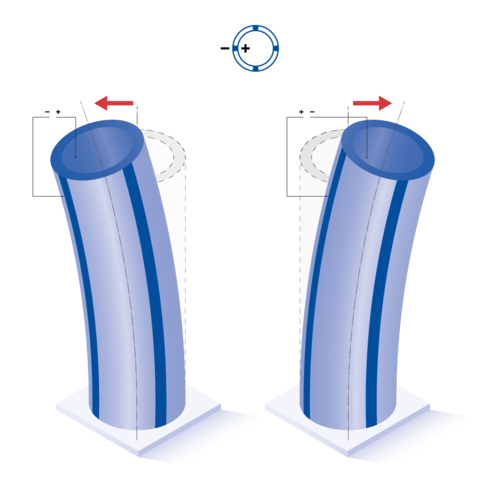 施加电压时,压电陶瓷管的直径、轴向长度和壁厚会发生变化。 通过采用分段电极设计,可借助受控弯曲实现准确横向位移。 这类高精度超迅速运动具有大范围应用场景——从微剂量分配和喷墨打印,到微小物体的准确定位、玻璃纤维操纵以及超声波生成。 通过对压电元件进行针对性优化,可实现契合特定应用的定制化特性。