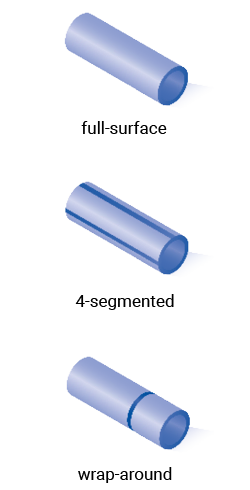 | 电极设计 | 除多分段压电管外,还可提供全表面电极、4段式及环绕式电极等设计方案, 详见右栏。 |