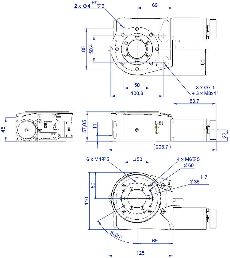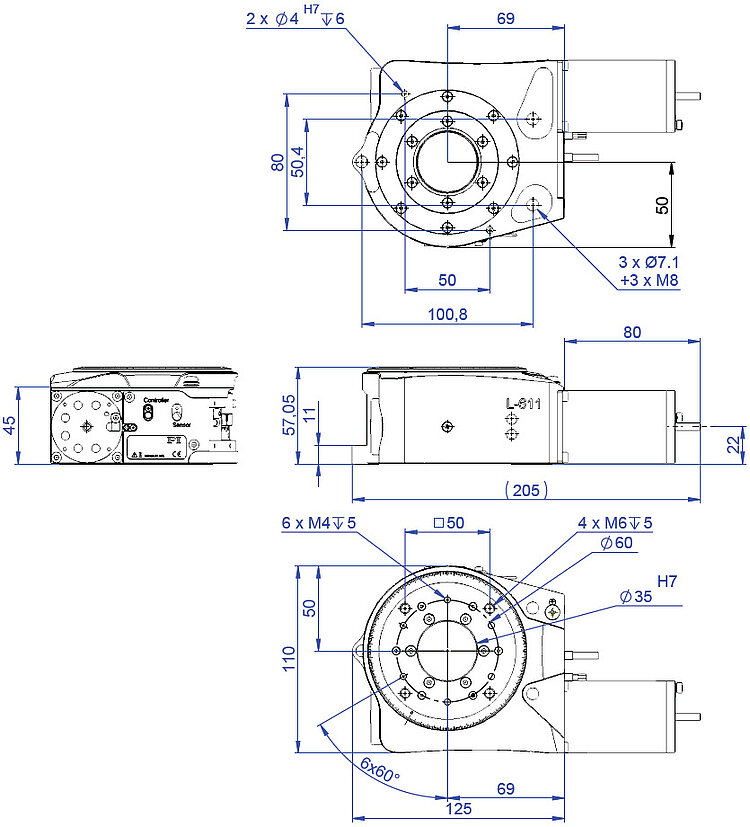 低游隙带预载蜗轮副实现精密定位。带预载枢轴承实现高运动精度。通光孔径直径为35毫米。双向旋转行程无限。参考点开关。