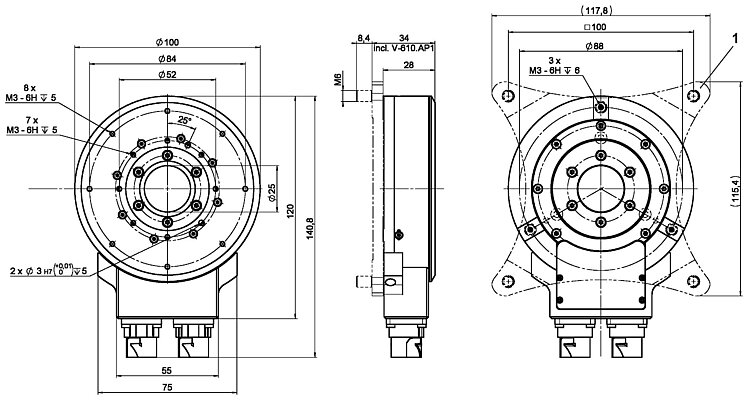 紧凑型PIMag 转台,直径为25毫米的通光孔径,无铁芯三相力矩电机,带正弦/余弦信号传输的增量角度测量系统, 制动闸