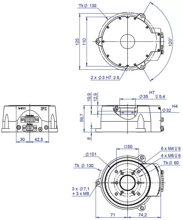 转台,直径为32毫米的通光孔径,铁芯三相力矩电机,带正弦/余弦信号传输的增量角度测量系统