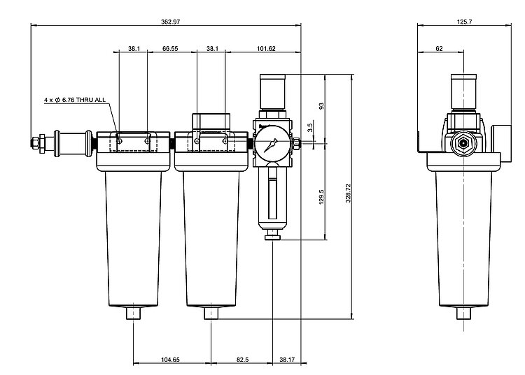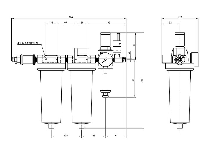 - 压力调节 - 模块包含一个带压力计的压力调节器,以实现气源的简便调整。