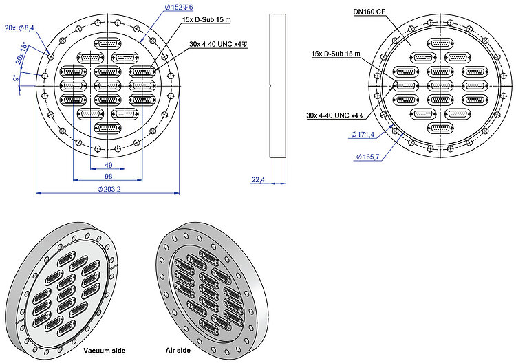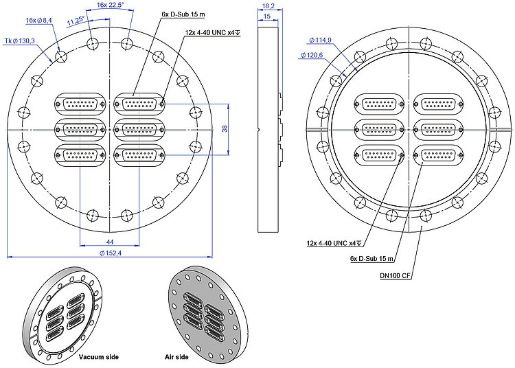 C-815.VFU66 真空接头,CF160法兰,6 × D-sub 9(公头/公头)和6 × D-sub 15(公头/公头),适用于高真空(达10-7百帕)和超高真空(达10-9百帕) 添加至报价单 从报价单移除