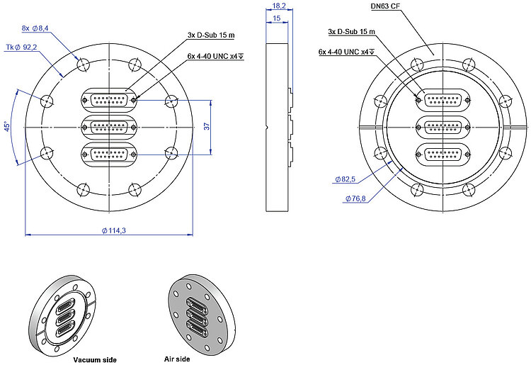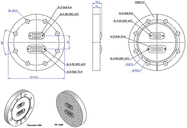 C-815.VFU11 真空接头,CF63法兰,1 × D-sub 9(公头/公头)和1 × D-sub 15(公头/公头),适用于高真空(达10-7百帕)和超高真空(达10-9百帕) 添加至报价单 从报价单移除