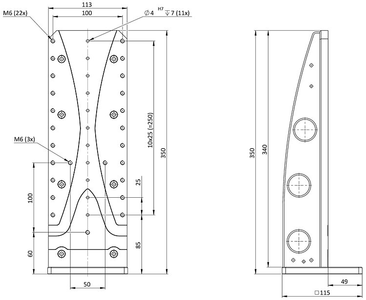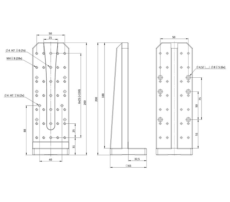 转接支架用于宽度达100毫米、长度达300毫米的定位器的垂直安装,真空兼容至10-6百帕