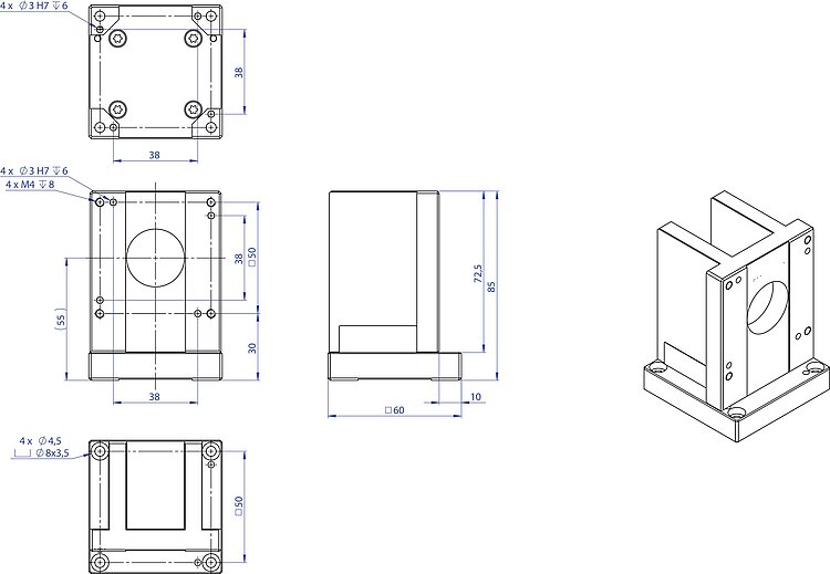 Adapter bracket for vertical mounting of L-8x6 and V-8x6 stages, length 85 mm, incl. mounting kit