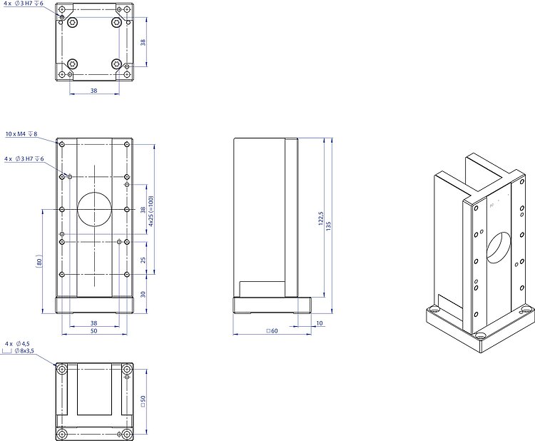 Adapter bracket for vertical mounting of L-8x6 and V-8x6 stages, length 135 mm, incl. mounting kit