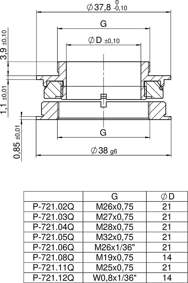 | Thread on the microscope side | M26 × 0.75 mm | M27 × 0.75 mm | M28 × 0.75 mm | M32 × 0.75 mm | M26 × 1/36" | M19 × 0.75 mm | M25 × 0.75 mm | W0.8 × 1/36" | |