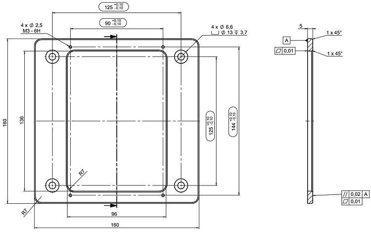 用于将P-736.ZRxS PInano® Z向显微镜扫描仪平台安装到U-760 XY位移平台上的接装板。