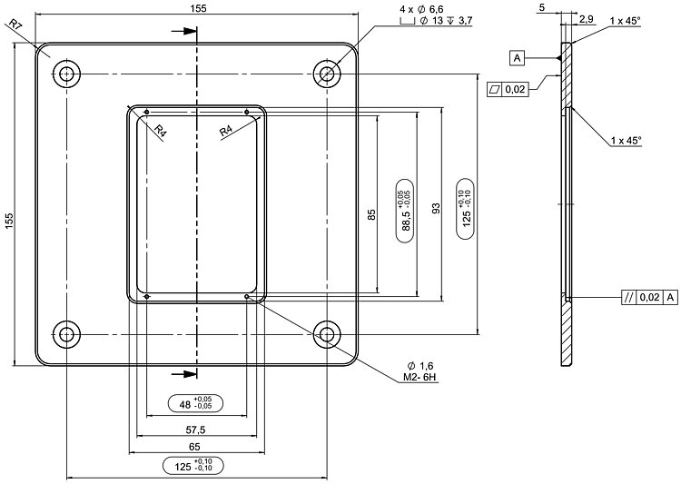 用于将P-545.xx3显微镜载片和培养皿支架安装到U-760 XY位移平台的接装板