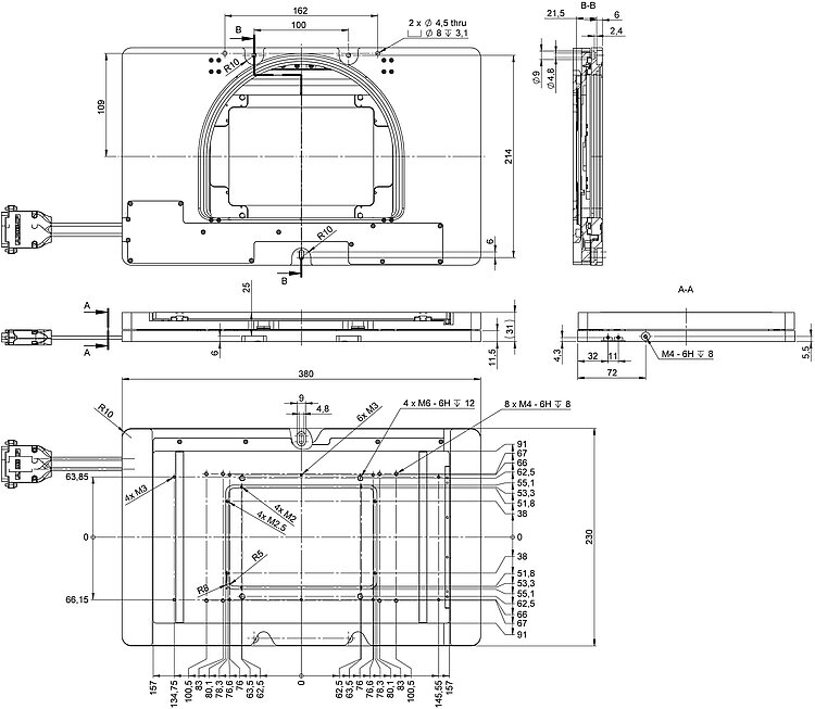 - Velocity up to 120 mm/s, sensor resolution 10 nm